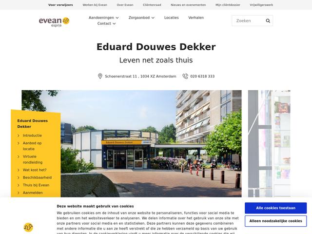 In Eduard Douwes Dekker staat het thuisgevoel voorop. Bewoners bepalen voor een groot deel zelf hoe hun dag eruitziet, wat ze eten en welke hobby's ze uitoefenen. Zo voelt wonen in Eduard Douwes Dekker niet als wonen in een instelling, maar als thuis, mét wat ondersteuning van Evean. Bewoners krijgen zorg van het team helpenden, verzorgenden en verpleegkundigen. De specialist ouderengeneeskunde is verantwoordelijk voor de medische behandeling van bewoners van het verpleeghuis. Op verwijzing kunnen bewoners terecht bij de fysiotherapeut, de ergotherapeut, de maatschappelijk werker, de diëtist, de logopedist, de geestelijk verzorger, de psycholoog en psychomotorisch therapeut.