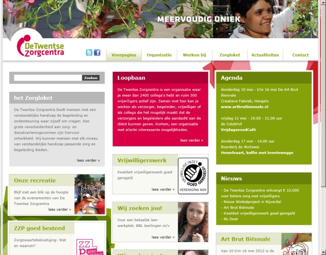 De Twentse Zorgcentra is een organisatie die op meerdere plekken in Twente een breed scala aan vormen van zorg en dienstverlening biedt, zoals hulp aan huis, weekendopvang en vakantieopvang, begeleiding bij wonen en dagbesteding en begeleid werken. De dienstverlening komt tot stand in kleinschalige, zelfstandig werkende eenheden. U bepaalt zelf van welke vorm(en) van zorg- en/of dienstverlening u gebruik wilt maken. Wij proberen u zo goed mogelijk te ondersteunen bij die keuze door informatie en oriëntatiemogelijkheden aan te bieden en te bemiddelen.