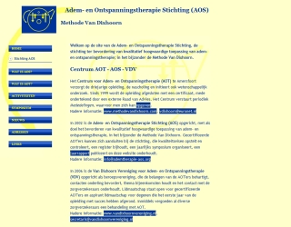 Adem- en Ontspanningstherapie Stichting (AOS). Deze site biedt informatie over de stichting en over adem- en ontspanningstherapie; in het bijzonder de Methode Van Dixhoorn. Daarnaast is er een adreslijst van adem- en ontspanningstherapeuten en praktijken voor ademtherapie. Verder wordt er aandacht besteed...